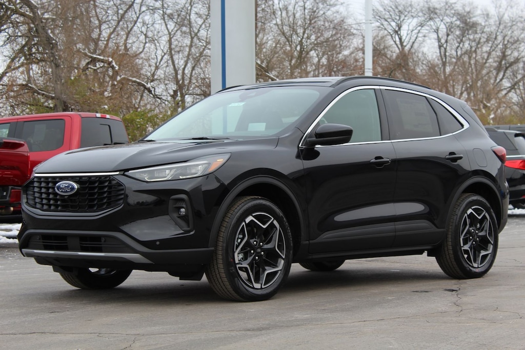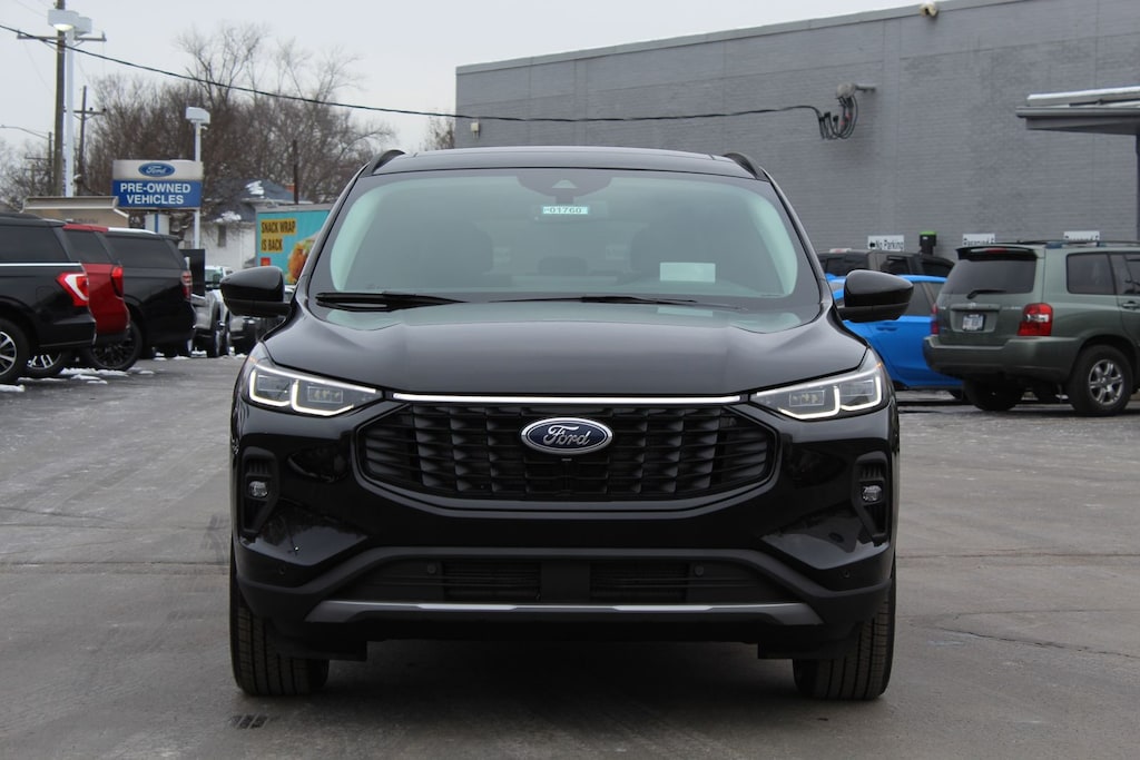 This 2026 Ford Escape Platinum in Agate Black Metallic is equipped with a 2.0L EcoBoost I4 engine paired with an 8-speed automatic transmission for strong, refined performance. The AWD system enhances traction and stability, making it well-suited for varied road and weather conditions. Inside, the Platinum trim adds leather-trimmed seating, a heated steering wheel, and heated and ventilated front seats for enhanced comfort. SYNC 4 with a large touchscreen provides Apple CarPlay, Android Auto, built-in navigation, and premium connectivity options. With a hands-free power liftgate, advanced driver-assist features, and a well-appointed interior, this Escape Platinum offers both capability and upscale convenience.