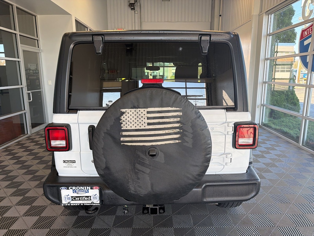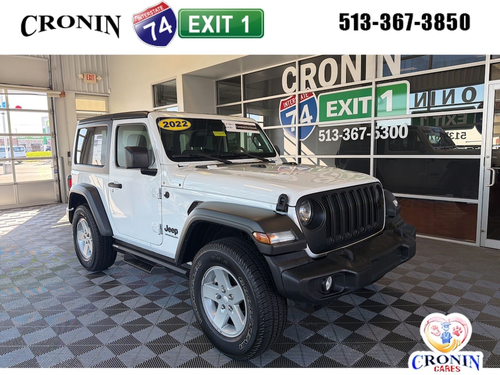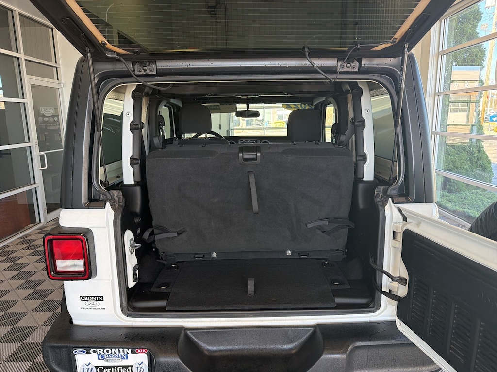 A++ rating with the BBB, Family Owned and operated since the 1940's. We want to stay around another 75+ years and to do that, we know that we need to do the right thing by our employees and our customers to create a better experience. Cronin Ford/Kia has a lot full of deals, and if we don't have it we can get it for you! Our product specialists are commission free and ready to serve your needs! Check out our amazing reviews in the words of our own customers. Thank you for shopping with us! Quick Order Package 24B Sport (DISC), 3.45 Overall Top Gear Ratio, 4-Wheel Disc Brakes, 7.0" Touchscreen Display, 8 Speakers, ABS brakes, Air Conditioning, AM/FM radio, Apple CarPlay, Auxiliary Battery, Black 3-Piece Hard Top, Brake assist, Cloth Low-Back Bucket Seats, Compass, Deep Tint Sunscreen Windows, Delay-off headlights, Driver door bin, Driver vanity mirror, Dual front impact airbags, Dual front side impact airbags, Electronic Stability Control, Emergency communication system: SiriusXM Guardian, Engine Oil Cooler, Freedom Panel Storage Bag, Front anti-roll bar, Front Bucket Seats, Front Center Armrest w/Storage, Front fog lights, Front reading lights, Global Telematics Box Module (TBM), Google Android Auto, Integrated Center Stack Radio, Integrated roll-over protection, Integrated Voice Command w/Bluetooth, Low tire pressure warning, MOPAR All-Weather Floor Mats, MOPAR Satin Black Grille, No Soft Top, Non-Locking Fuel Cap w/o Discriminator, Normal Duty Suspension, Occupant sensing airbag, Outside temperature display, ParkView Rear Back-Up Camera, Passenger door bin, Passenger vanity mirror, Power steering, R1234YF A/C Refrigerant, Radio data system, Radio: Uconnect 3 w/5" Display, Radio: Uconnect 4 w/7" Display, Rear anti-roll bar, Rear reading lights, Rear Window Defroster, Rear Window Wiper/Washer, SiriusXM Guardian-Included Trial (B), Speed control, Start-Stop Dual Battery System, Steering wheel mounted audio controls, Tachometer, Telescoping steering wheel, Tilt steering wheel, Traction control, Trip computer, Variably intermittent wipers, and Wheels: 17" x 7.5" Black Steel Styled.